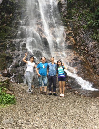 伴著明媚的陽光我們開啟了登山之旅,1700米的高度并沒有讓我們卻步,登山路上雖是汗流浹背,但卻能夠靜靜欣賞四周的美景,品味自然志趣。一路上綠意盎然,遠處高山層疊,近處流水潺潺,隨著高度的增加,壯觀的瀑布映入眼簾,陽光照耀下,瀑布像鍍上了一層金色光環,美不勝收。汗水打濕了衣服和頭發,腳步也越發沉重,但方法人沒有一個人放棄,大家自發地為自己、為對方加油打氣,再短暫休息后又卯足了勁繼續前進。