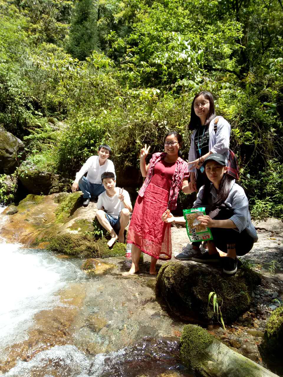 豐盛的午餐后,大家奔向此行的最終目的地-西嶺雪山大飛水景區。一路上大家有說有笑,車行顛簸也絲毫沒有削減小伙伴們的好興致,伴著一路的歡笑聲,很快便到達了目的地。